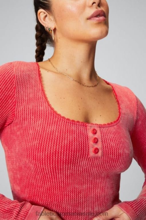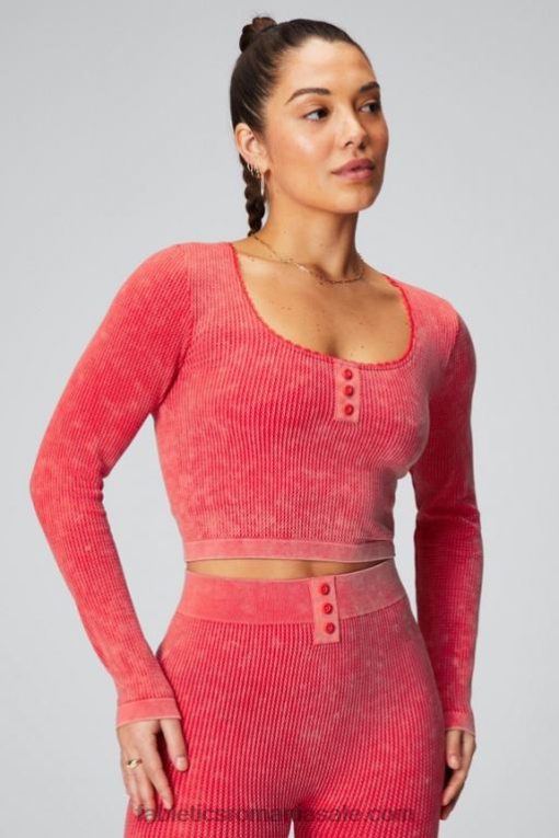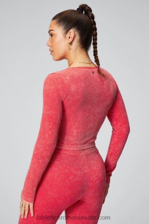 femei Fabletics spălat roșu căpșuni top cu mânecă lungă tricot cablu 6NTXP2608